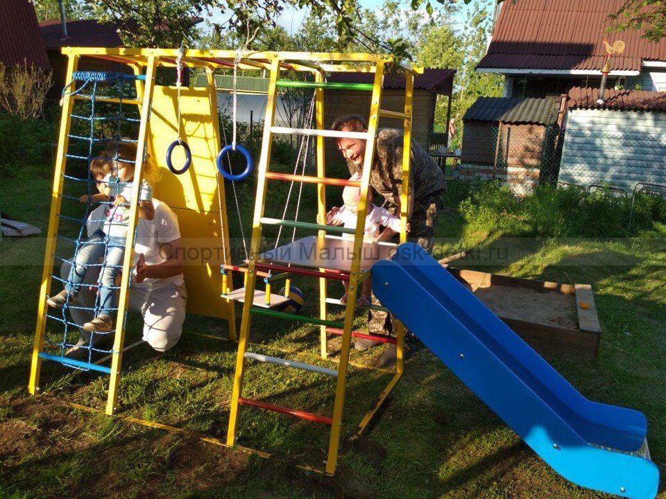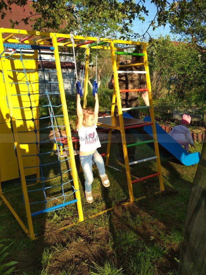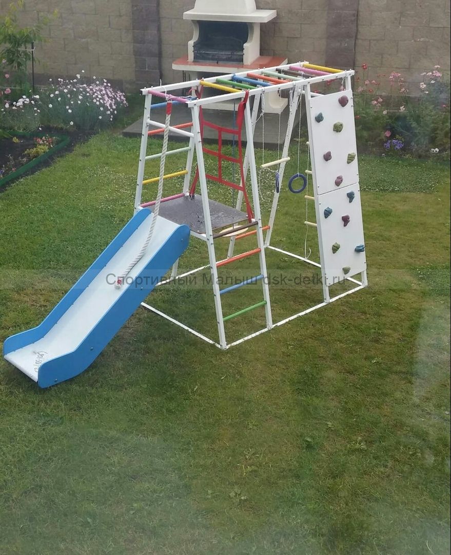 В базовую комплектацию НЕ входит гимнастический мат. Но так как комплекс можно использовать на улице и дома, мат можно приобрести дополнительно.