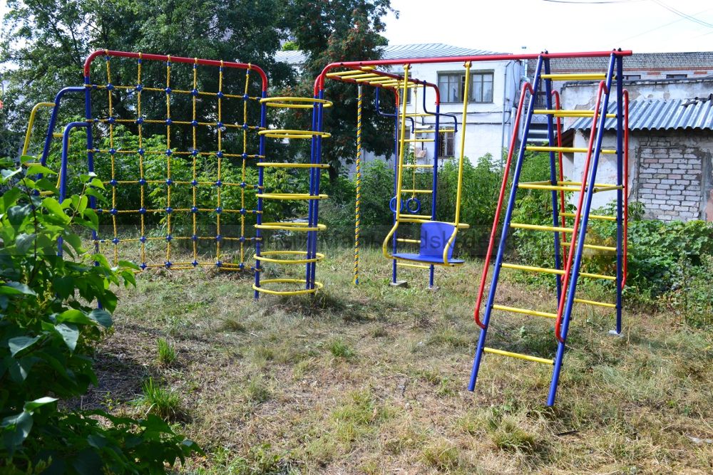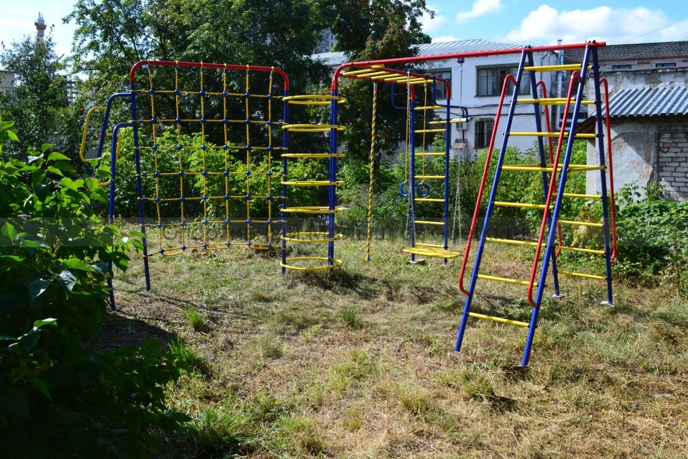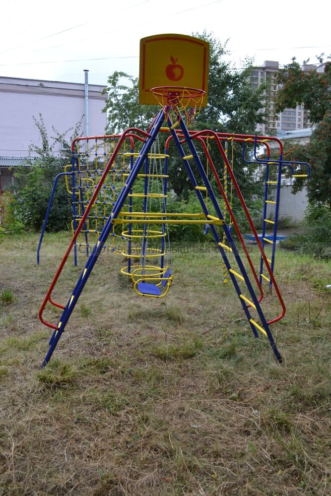 Уличный спортивный комплекс для оборудования игровой площадки для детей. Комплекс устанавливается в предварительно зацементированные "стаканы". В них вставляются стойки.