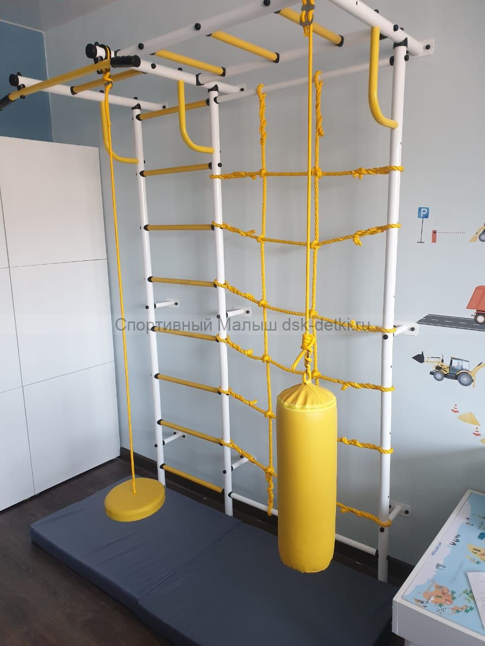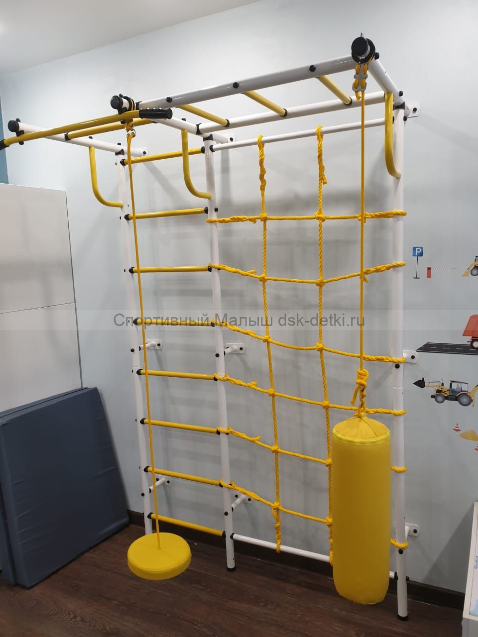 Пристенный спортивный комплекс для создания домашнего уголка для занятий гимнастикой с ребенком.