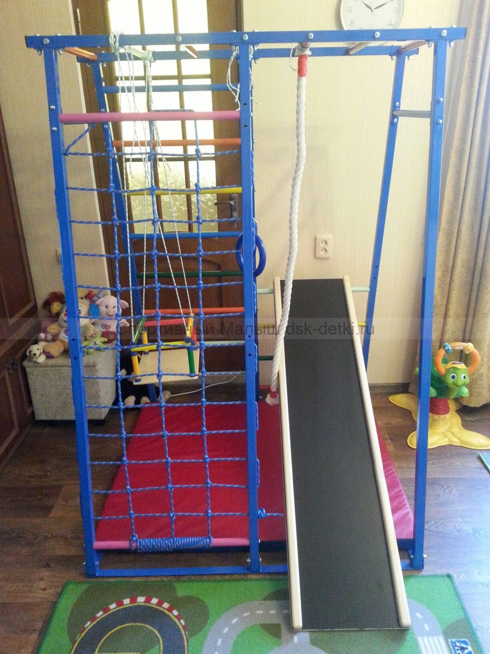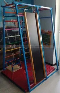 Универсальный спортивный комплекс для детей - полноценная замена спортивной площадки. В комплекс включены снаряды, позволяющие ребенку развиваться физически во время игры. ДСК Теремок в металлическом корпусе подходит для использования на улице и дома.