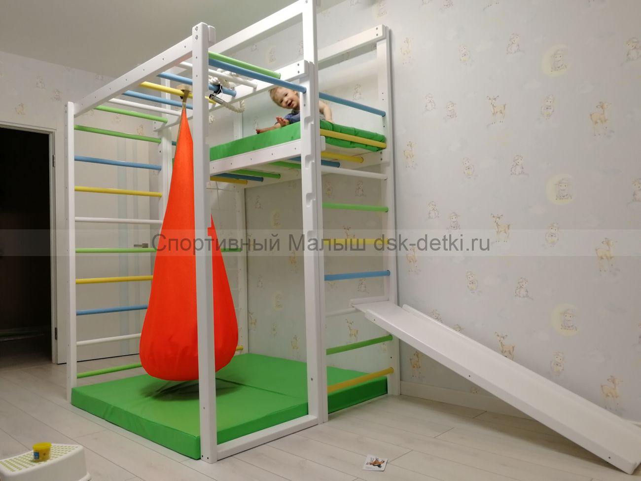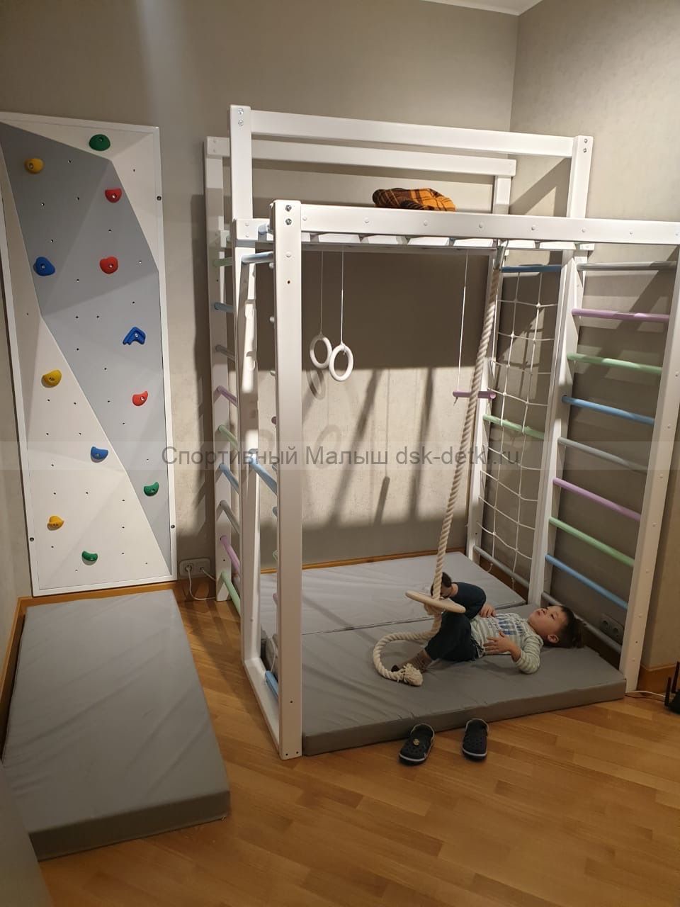 Навесное оборудование и мат - дополнительные опции. Выбор аксессуаров - в разделе "сопутствующие". Набор матов для комплекса (два под основание + 1 на рукоход) Вы можете добавить прямо в карточке товара, выбрав значение "есть" в пункте "набор матов" (сюда входит 3 мата: два мата 140 х 71 х 10 см под основание и мат 160 х 60 х 10 см на второй ярус)