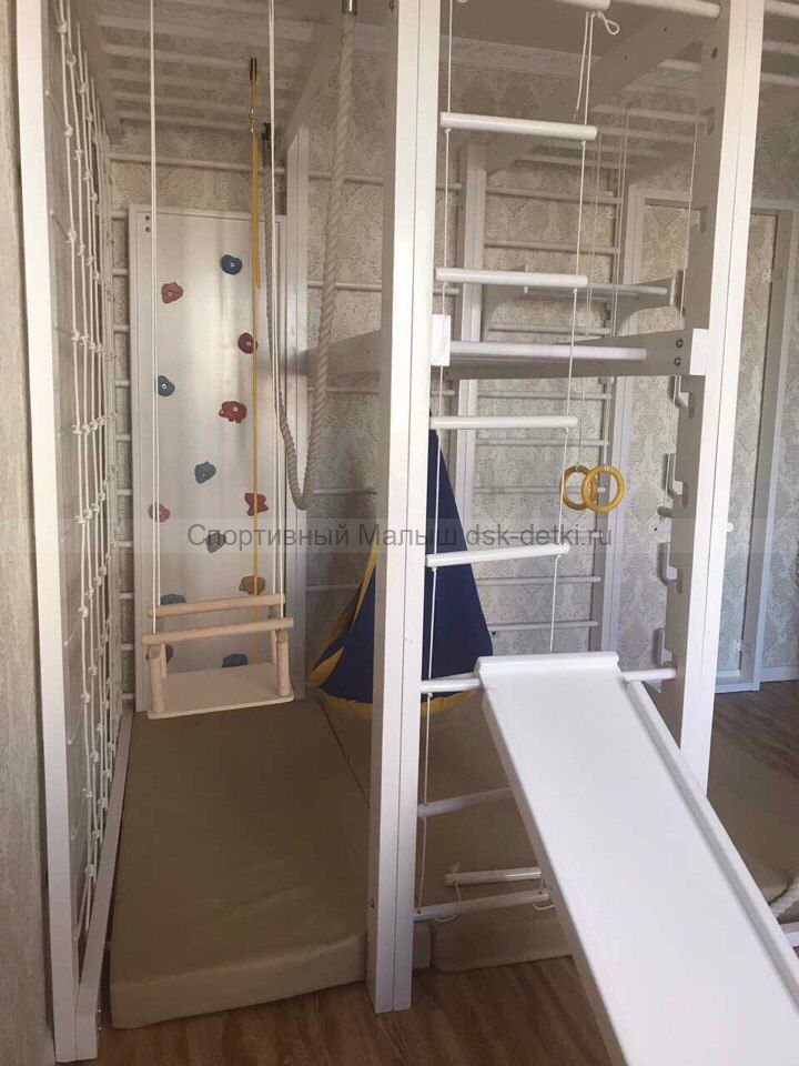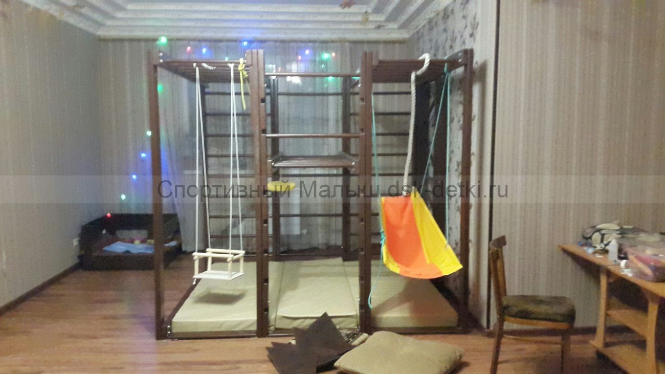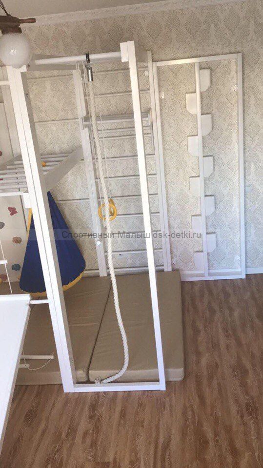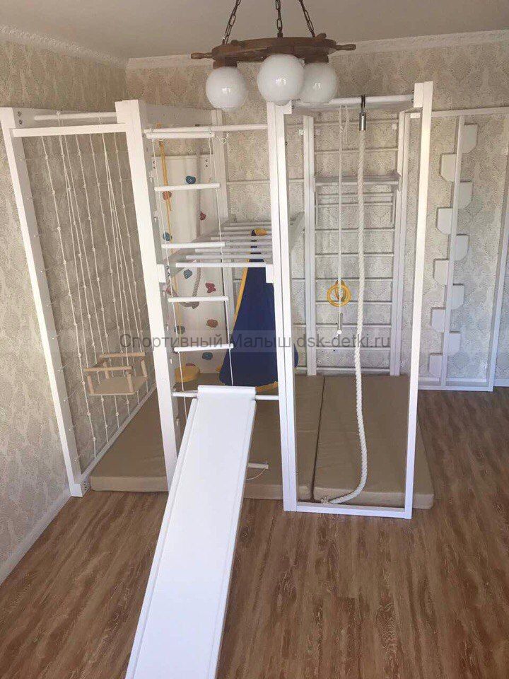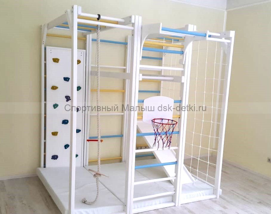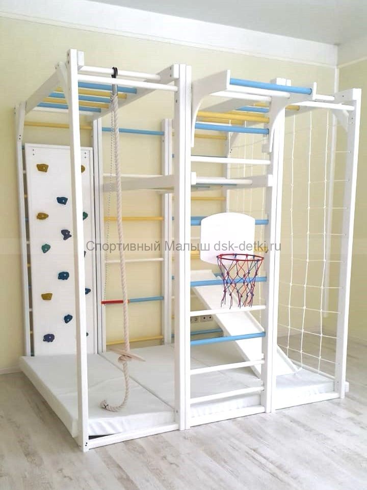 Большая домашняя площадка из дерева для детей. За счет кубической формы конструкция может быть установлена на пол без дополнительных креплений. При желании в комплектацию будут включены стальные анкеры крепежа к стене и/или полу (обсуждается при согласовании заявки).
