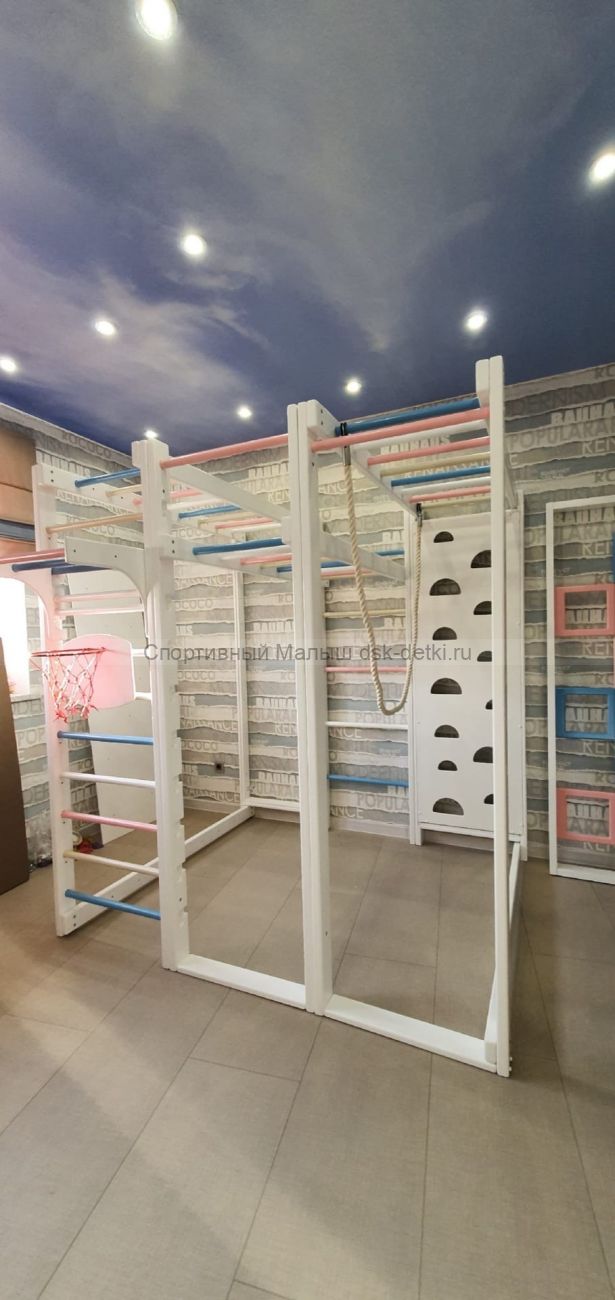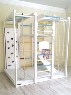 Высота: 2,3 м. Длина П-образной рамы и рукохода (горизонтальной гимнастической лестницы) - 1,8 м. Ширина - 2,13 м