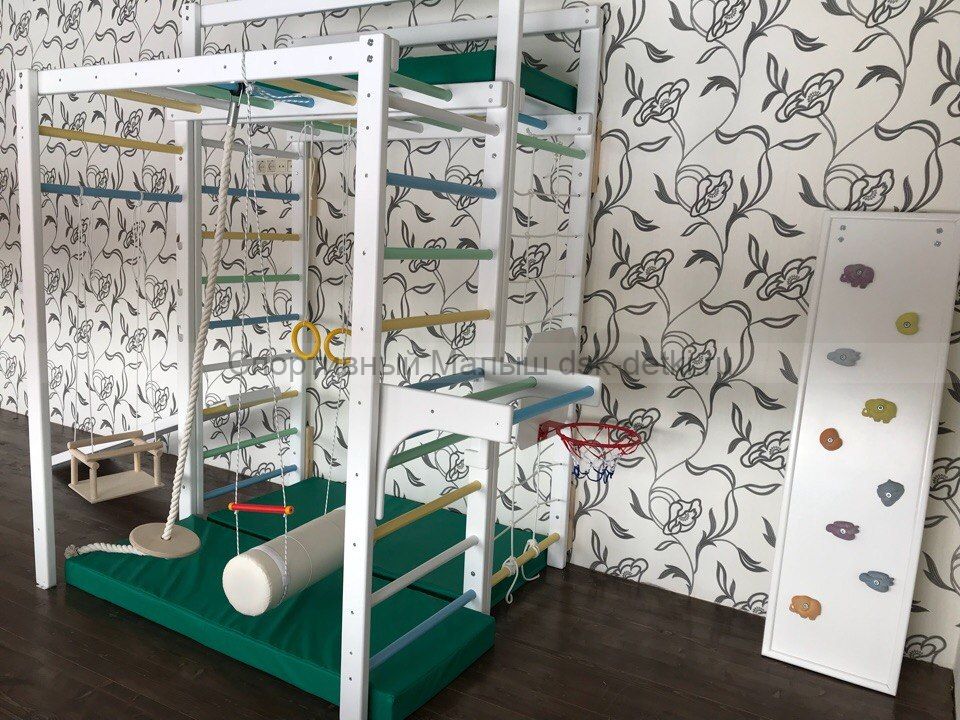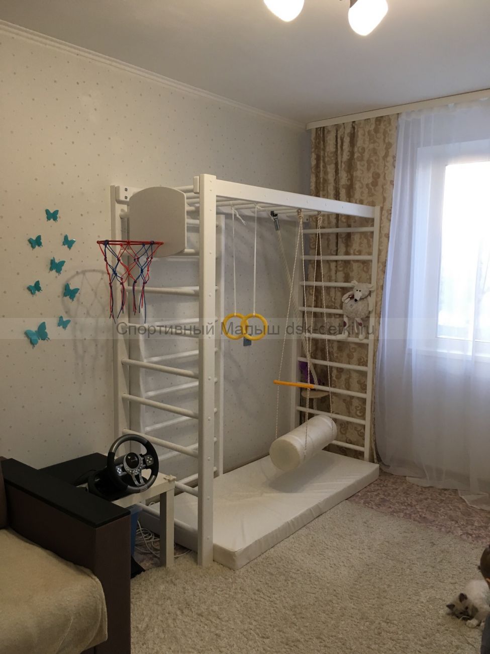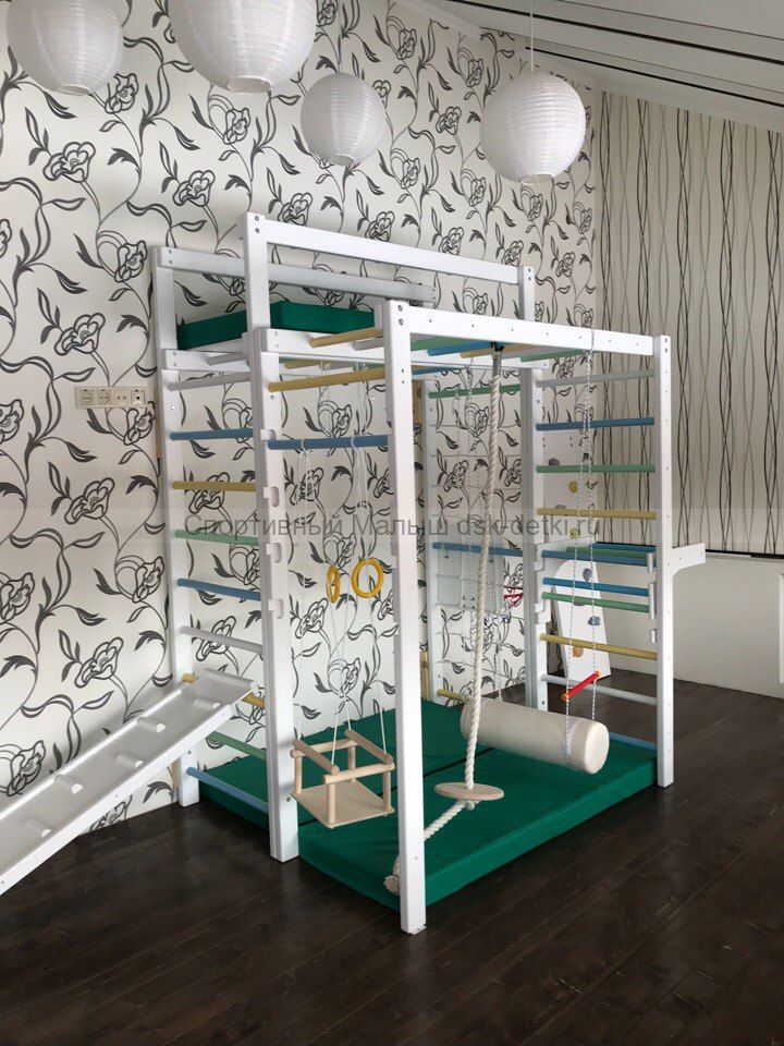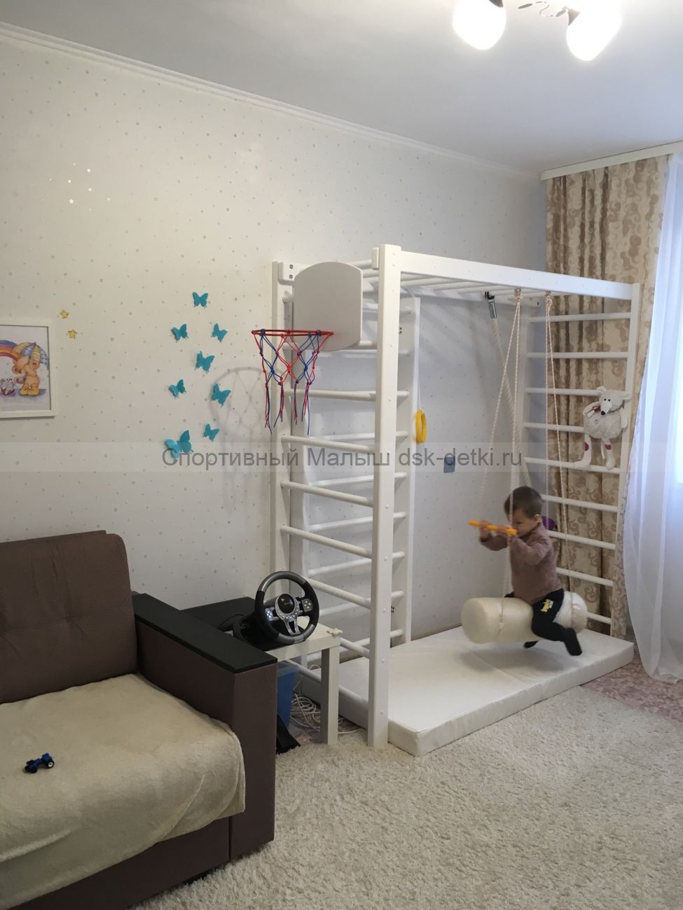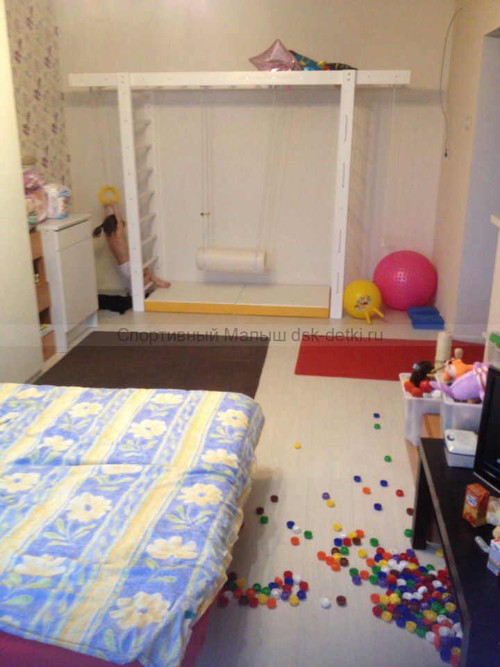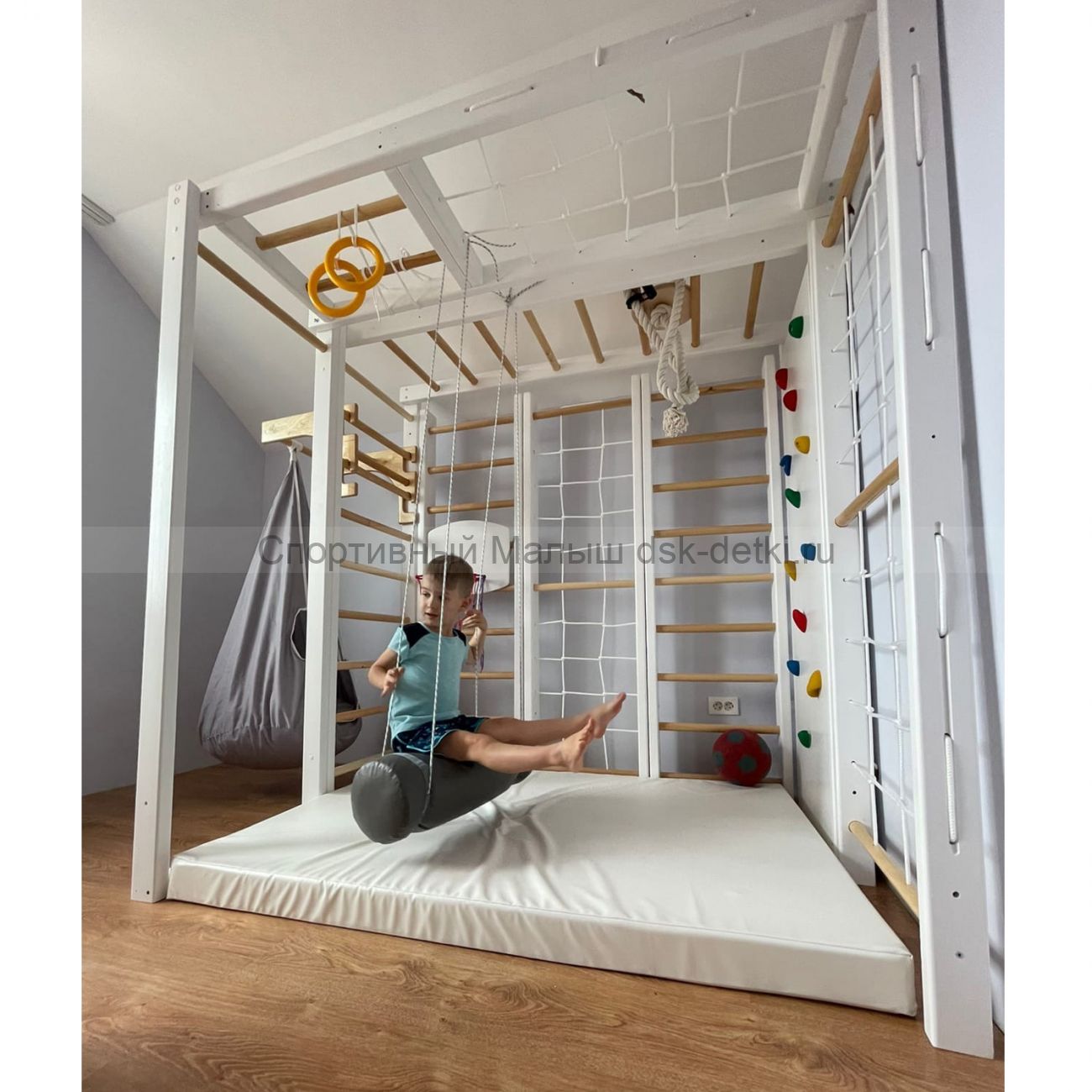 Груша-цилиндр с жесткой сердцевиной в основе и мягкой поролоновой поверхностью для удобства сидения. Снаряд позволяет ребенку сидеть на нем, как на коне, крепко держась за трапецию.