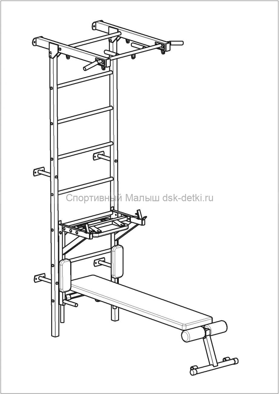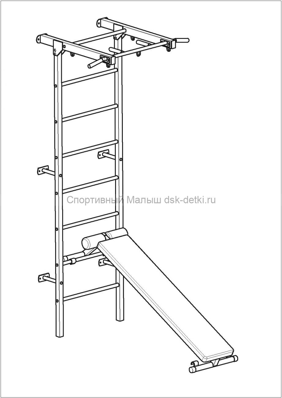 Допустимая нагрузка на скамью и шведскую стенку: 250 кг, на навес: 150 кг.