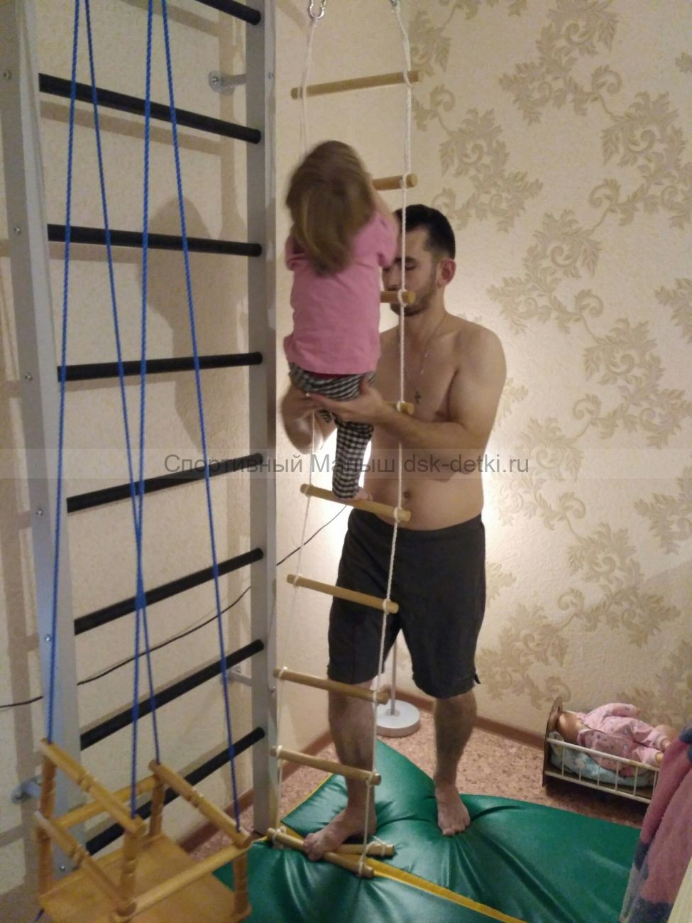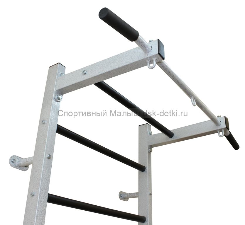 Усиленная Г-образная шведская стенка со встроенным турником и прорезиненными перекладинами. Модель доступна для использования взрослыми. Имеет три крючка для подвешивания навесных снарядов, в том числе, боксерской груши. Чтобы адаптировать комплекс под Вашего ребенка, добавьте к нему спортивные снаряды из списка сопутствующих товаров внизу карточки, и шведская стенка расширит свой функционал до семейной модели.