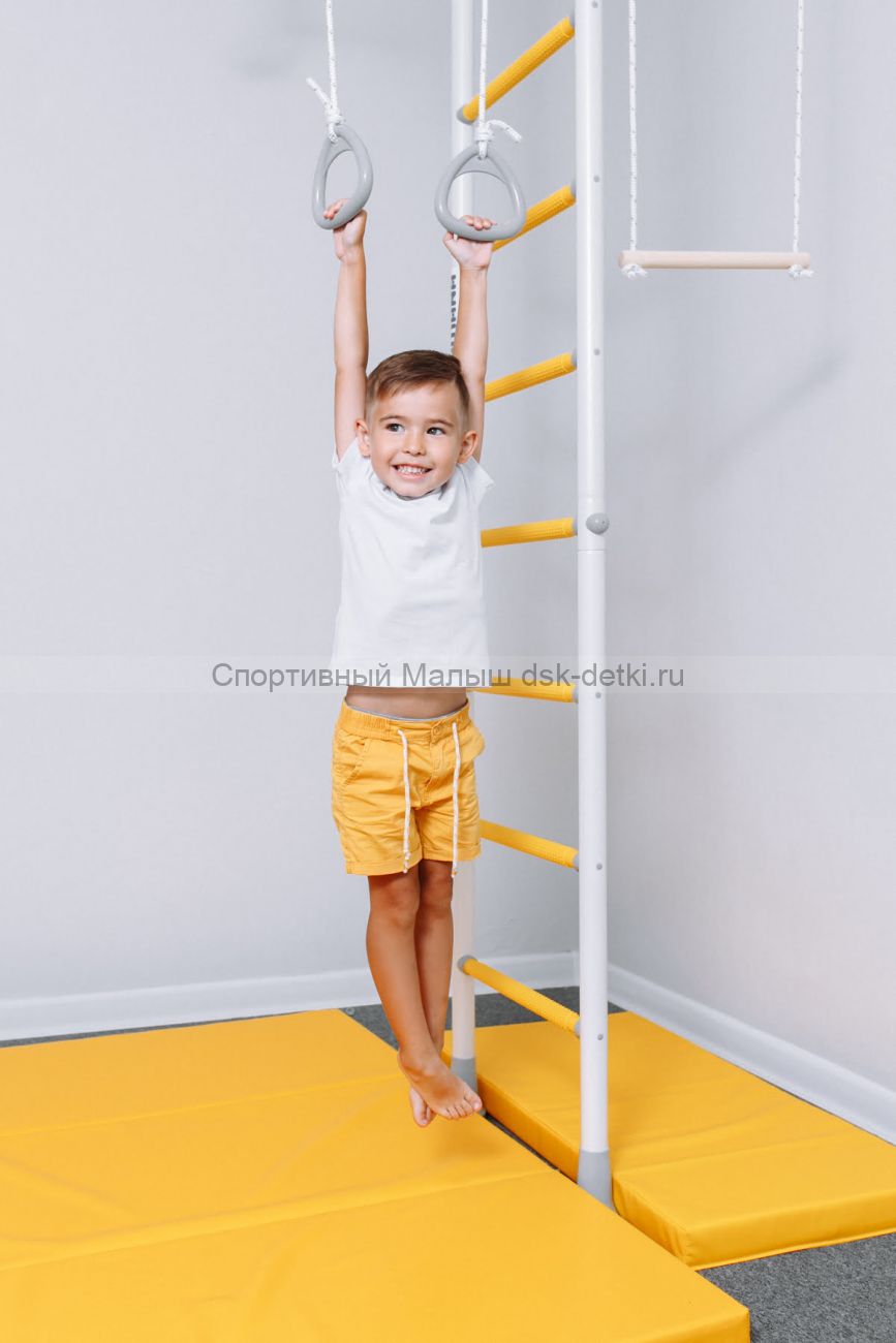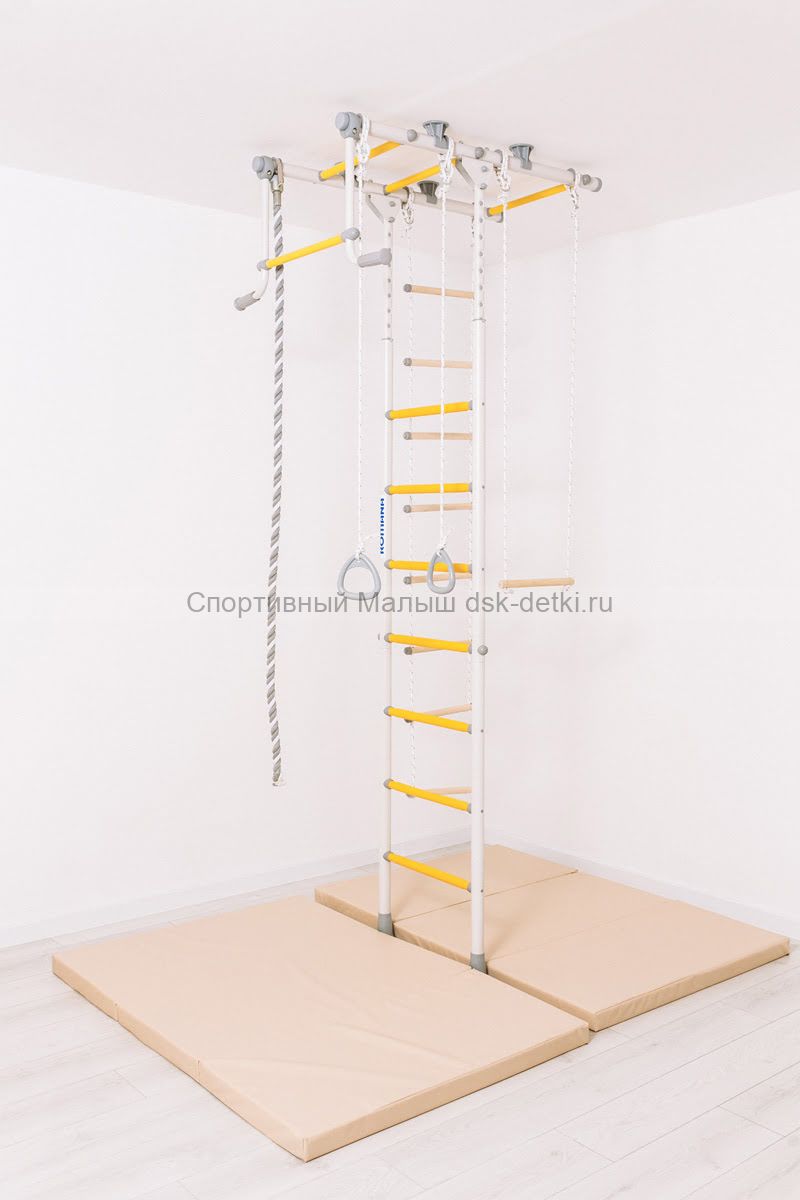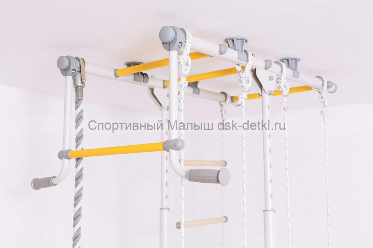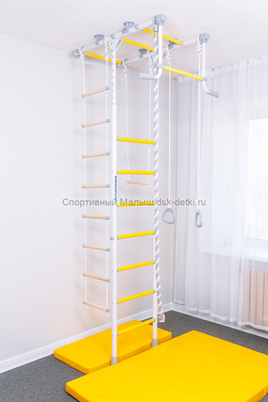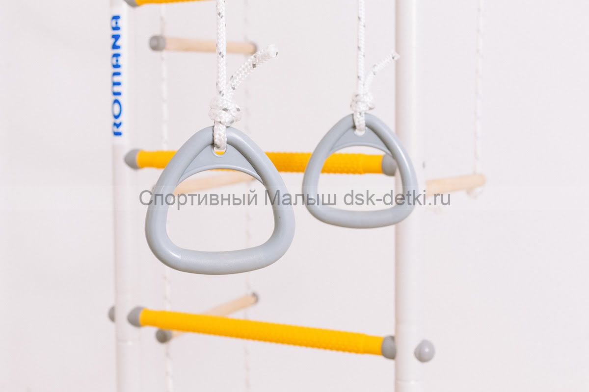 Комплекс ROMANA R1 был обновлен в 2017 году. Теперь у него яркие, теплые цветовые гаммы, которые гораздо лучше подходят для интерьеров детских комнат. Обновлены цвета стоек, каната, навески. Фурнитура получила приятный серый цвет вместо черного.