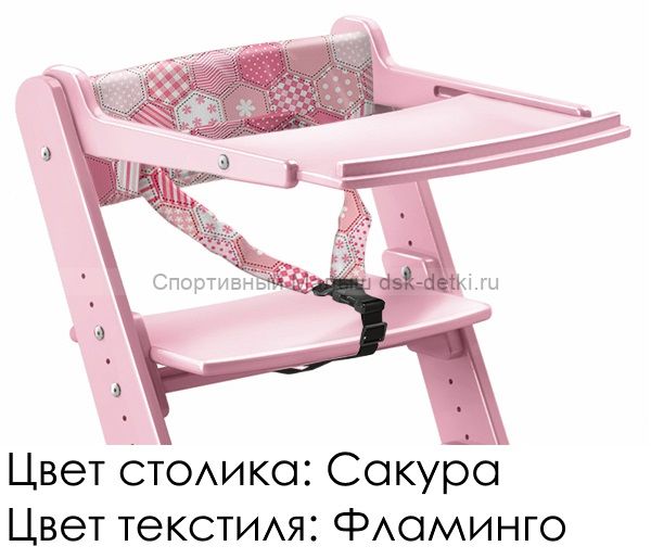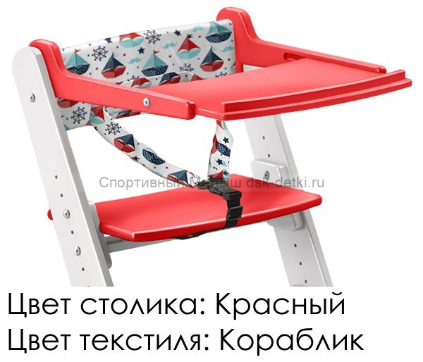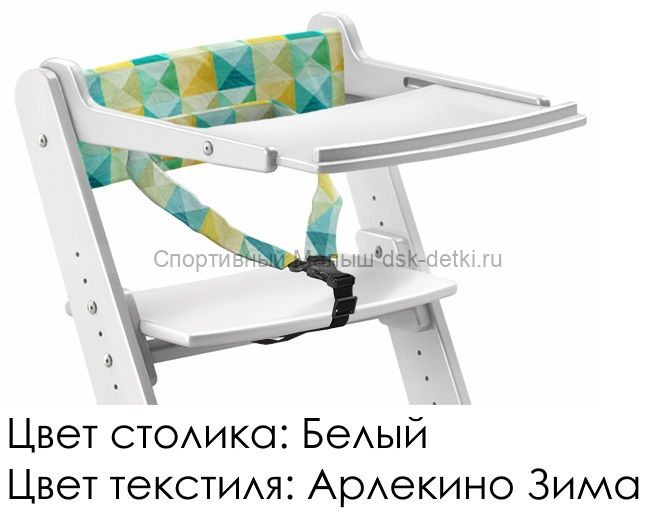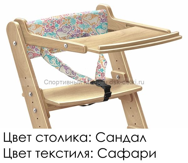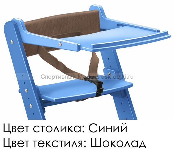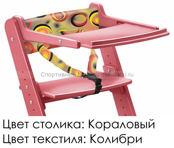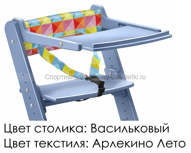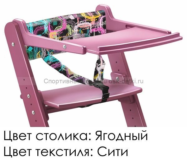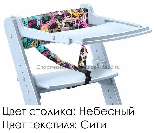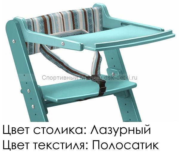 Съемный столик для кормления с удобной подушечкой-спинкой для малыша и ограничителем для фиксации положения малыша позволяет использовать стульчик-растишку с полугодовалого возраста.