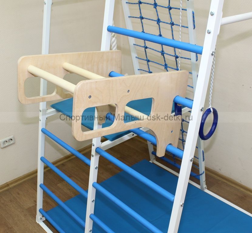 Навесной деревянный турник для комплексов раннего развития серии Теремок и шведских стенок с дополнительными прорезями для бокового хвата.