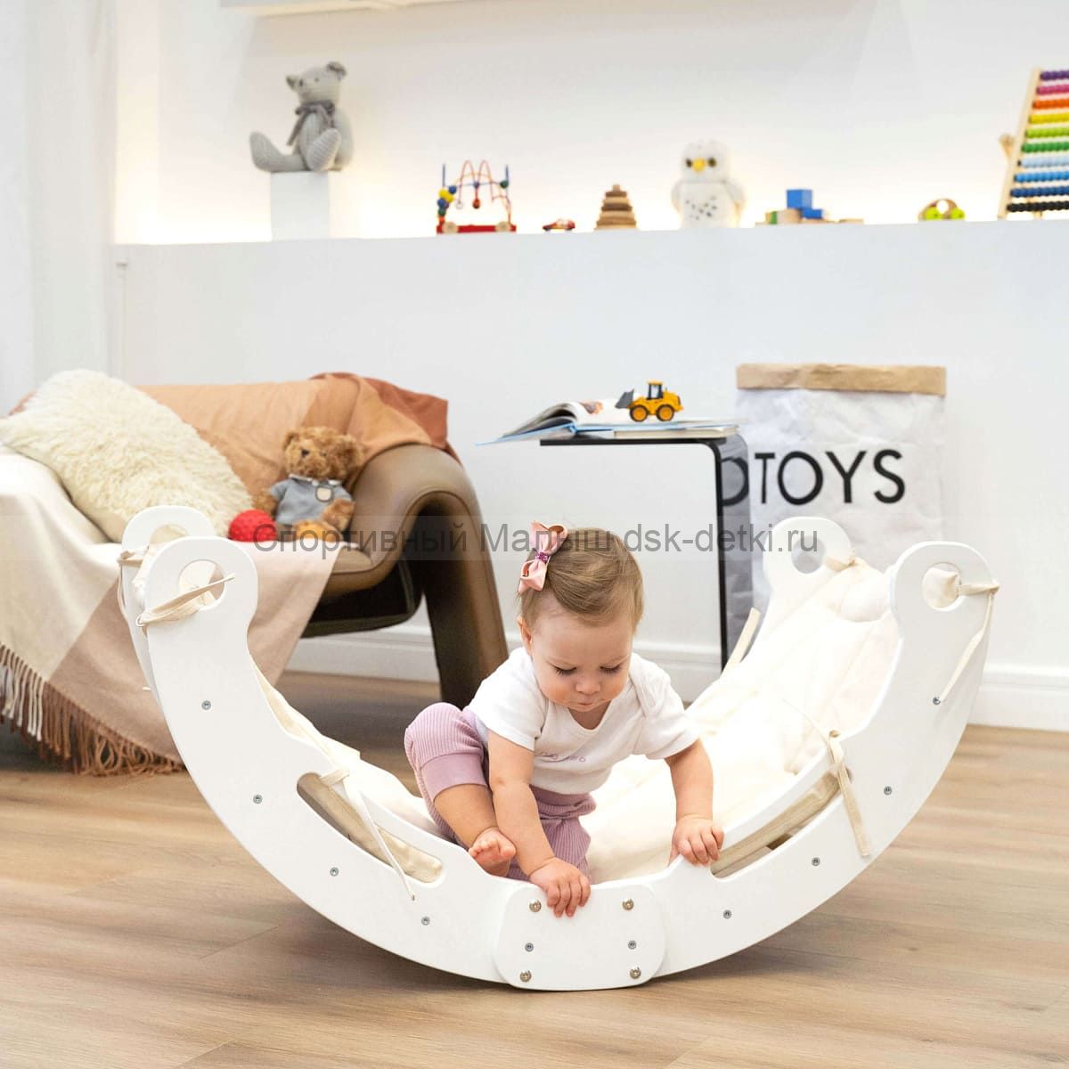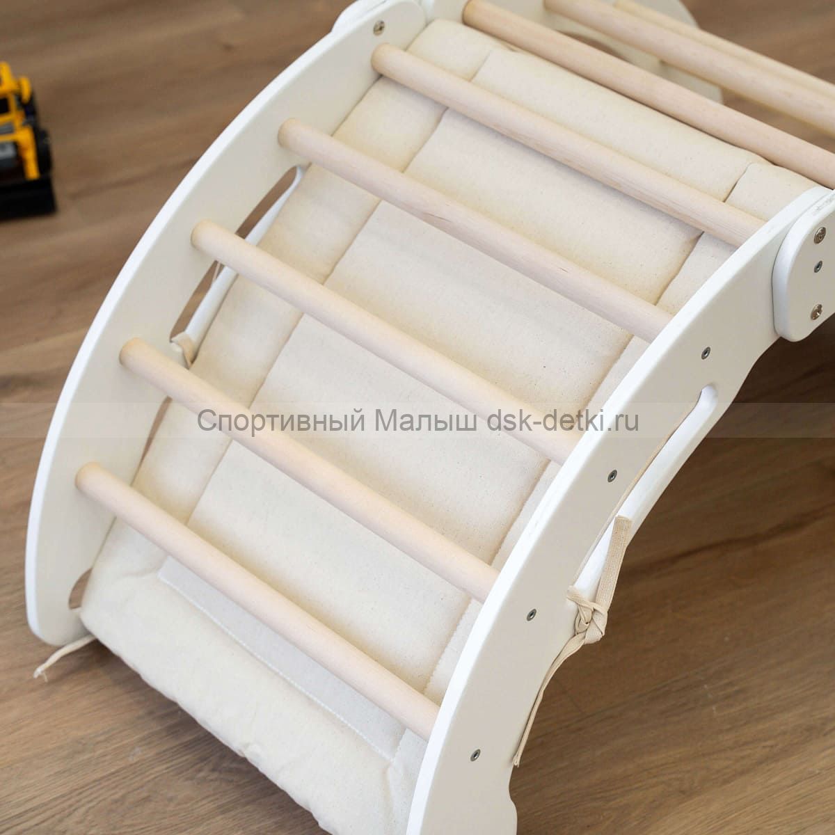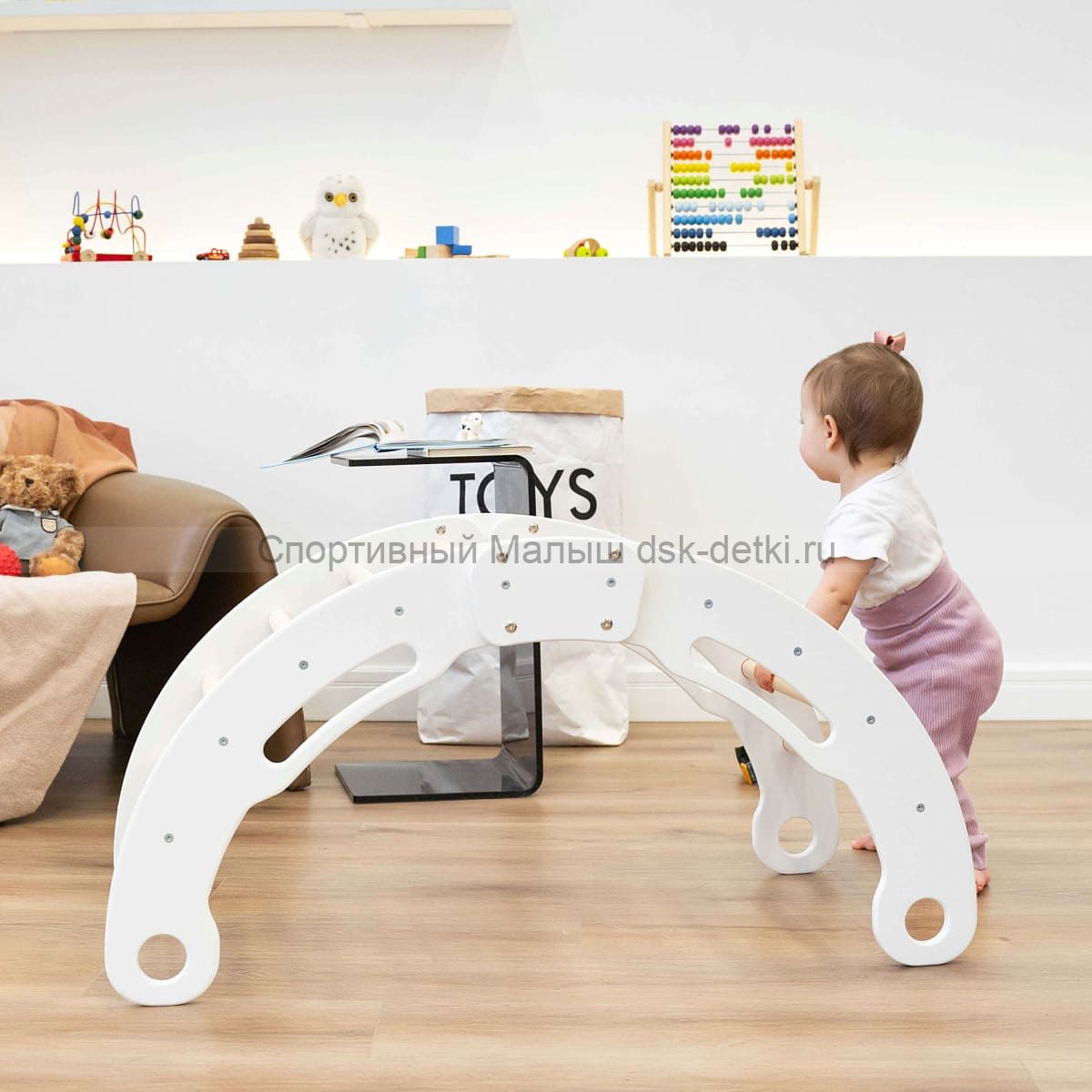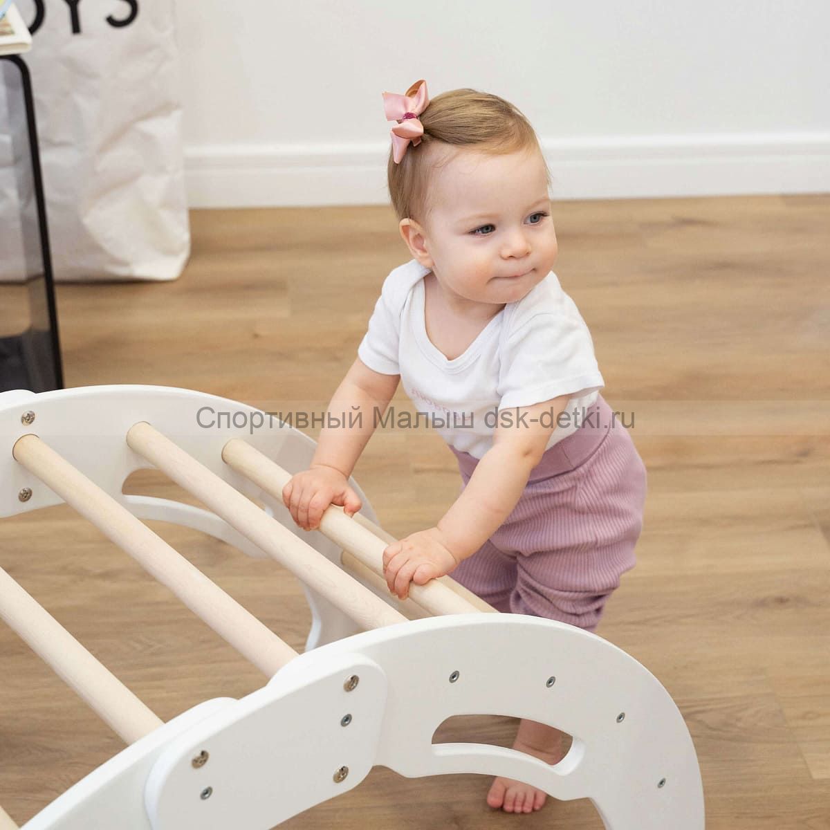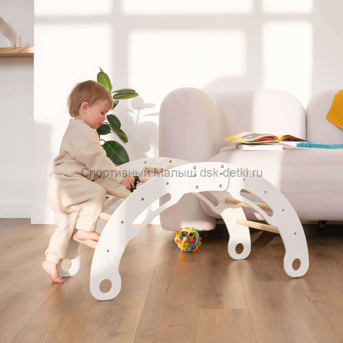 Арка Пиклера — универсальный компактный тренажер для развития координации и укрепления мышц ребенка. Изделие выполнено в форме изогнутой лестницы, которую можно перевернуть и использовать в двух вариациях: в качестве скалолазной дуги и перевернув в качестве качели.