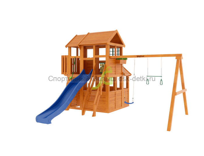 Материал комплекса - сосна, ель. Обработан безопасной защитной пропиткой на водной основе. Она придаёт дереву красивый оттенок и подчёркивает его природную текстуру.