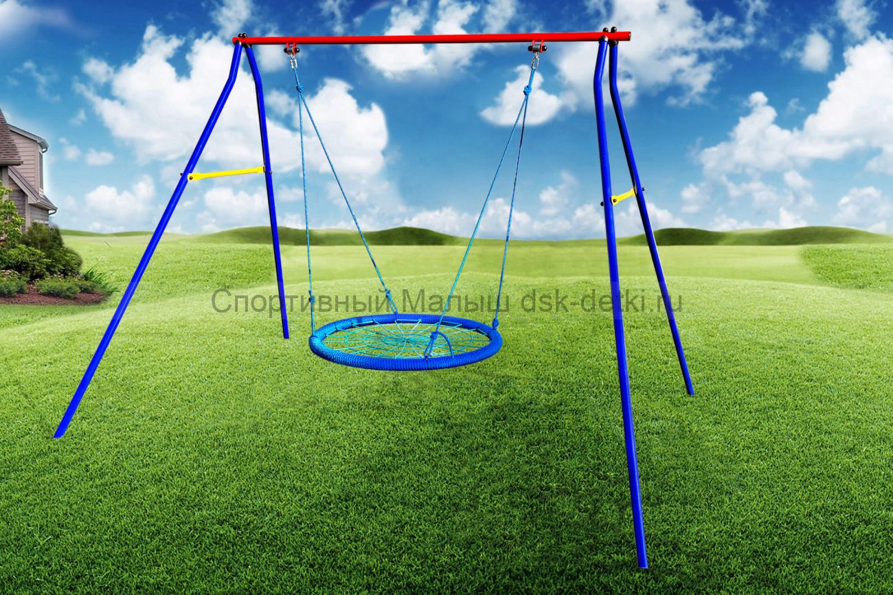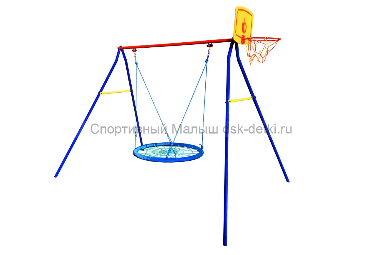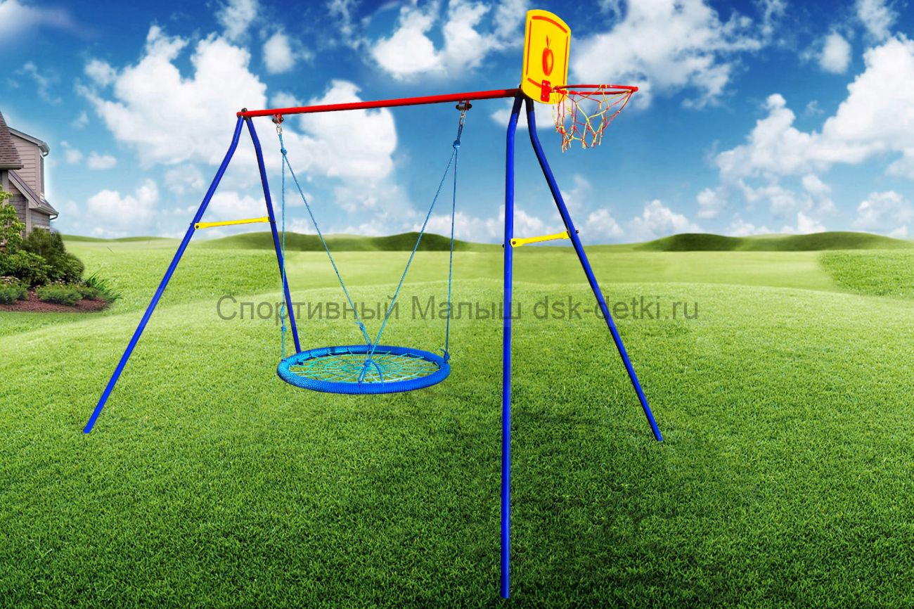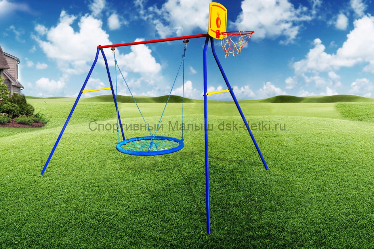 Дачные качели с возможностью навешивания баскетбольного щита для подвижных игр.
